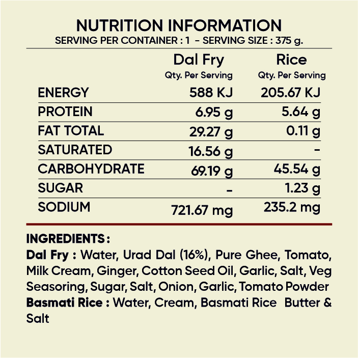 To enjoy this delicious combo, simply heat it up in the microwave or on the stovetop. In no time, you’ll be savoring a hearty and satisfying meal. Our Dal Fry & Basmati Rice Ready To Eat Combo is perfect for busy people who want to enjoy a delicious and authentic Indian meal without having to spend hours in the kitchen.
