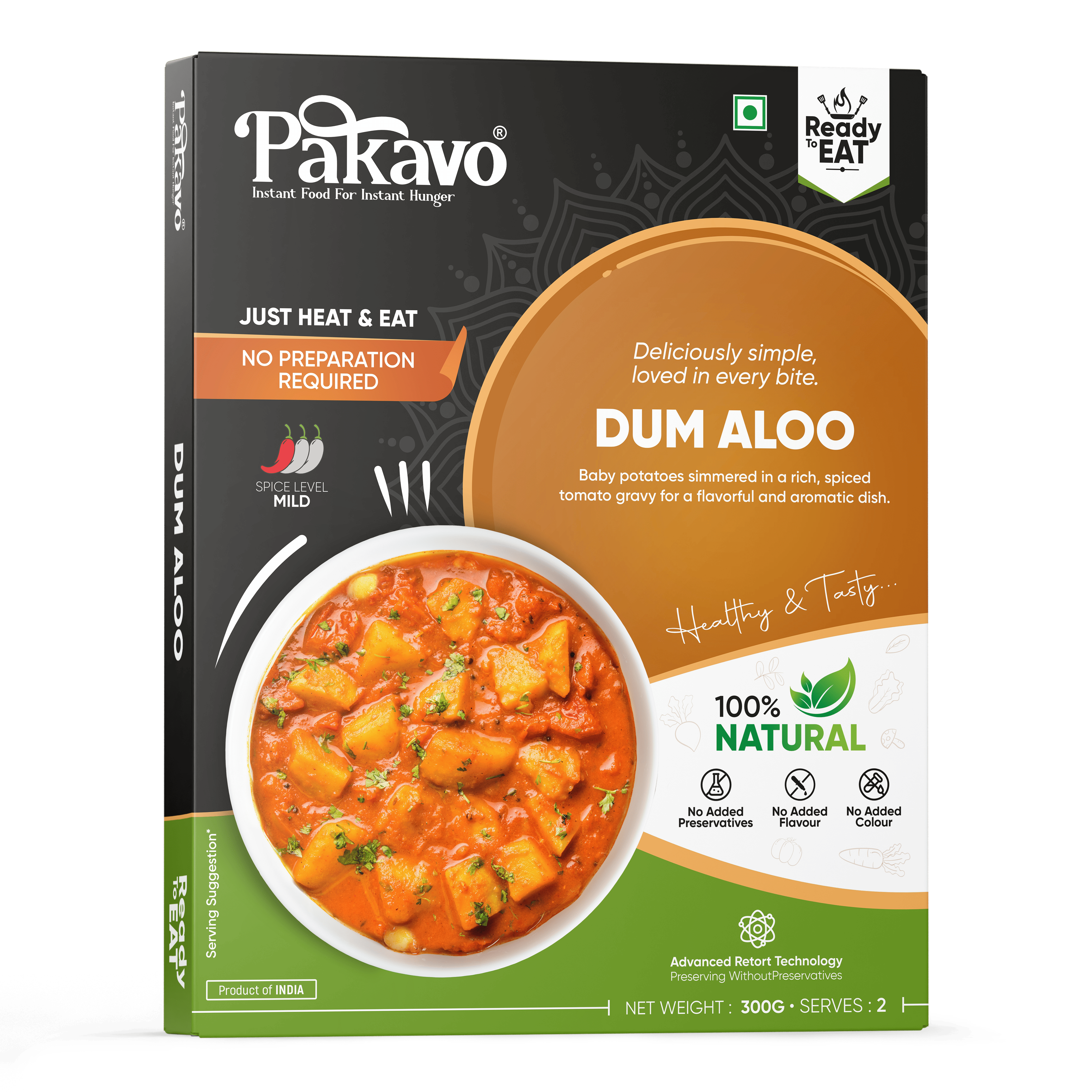 Enjoy the authentic flavor of Pakavo Dum Aloo. Relish the taste of tender potatoes cooked in a rich, flavorful gravy, made without added preservatives or colors. Ready to heat and enjoy, this classic dish is perfect for any meal. Store in a cool, dry place.