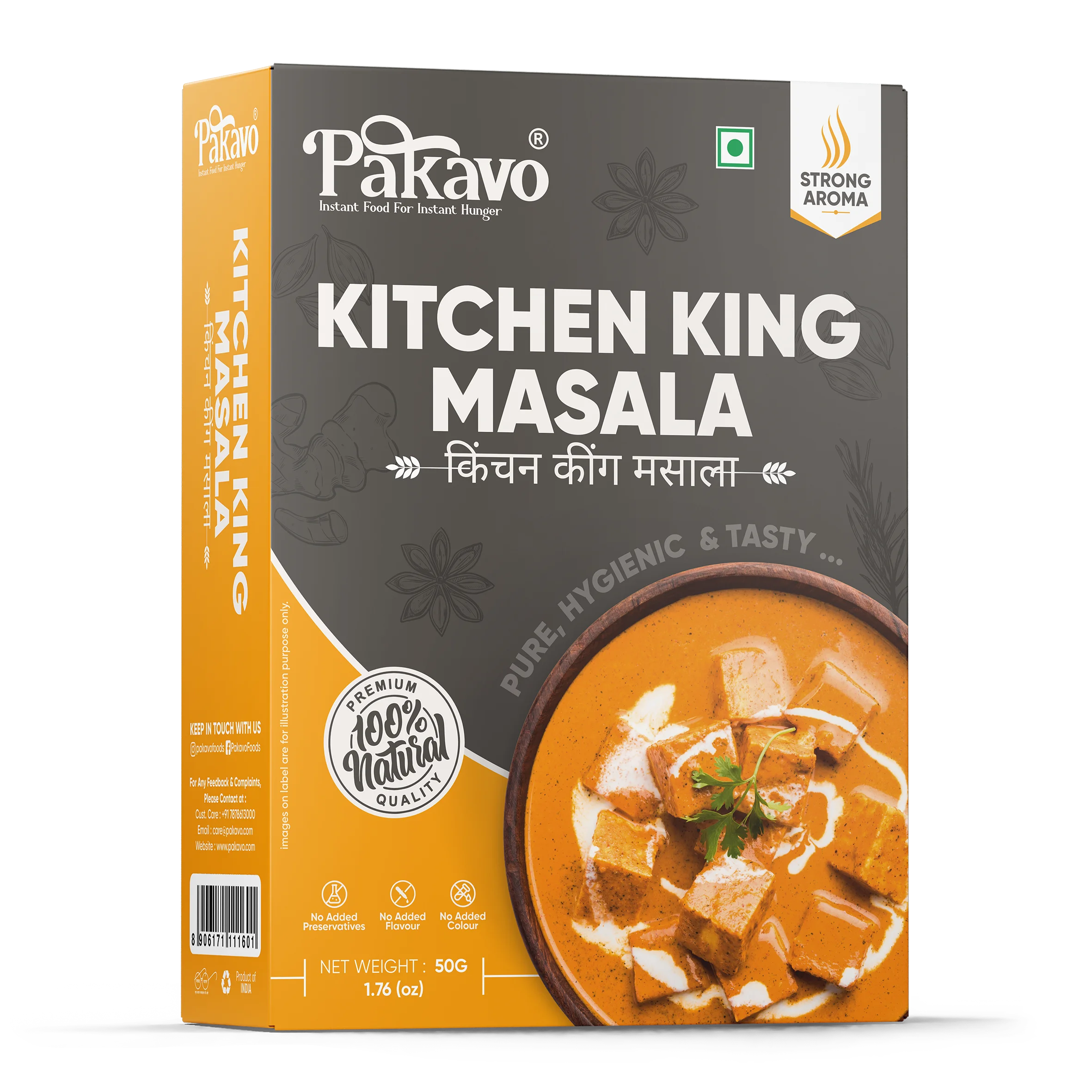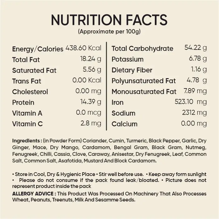 Transform your cooking with Pakavo Kitchen King Masala. This versatile and aromatic spice blend adds a royal touch to a variety of Indian curries and vegetable dishes, making them rich and flavorful. Store in a cool, dry place for long-lasting freshness.