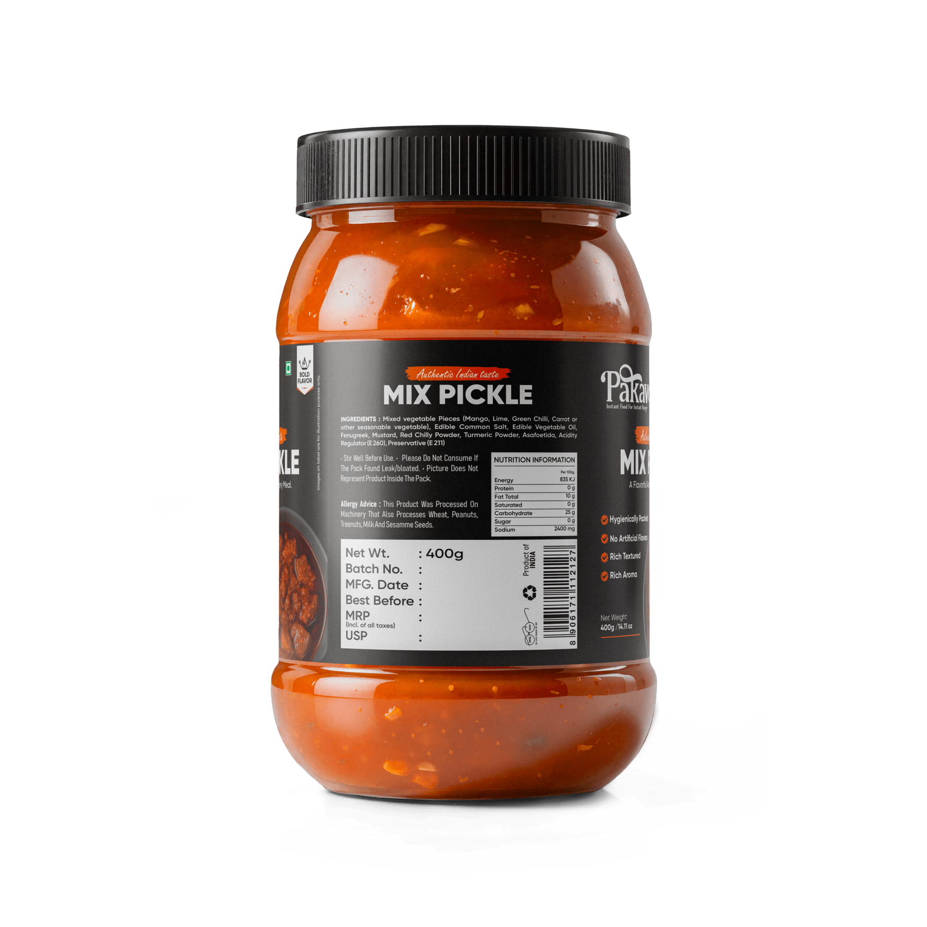 Enjoy the authentic flavor of Pakavo Mixed Pickle. A delightful combination of seasonal vegetables and fruits blended with traditional Indian spices, it offers a perfect balance of spicy, tangy, and savory flavors. Packaged for freshness, store in a cool, dry place and savor it anytime!