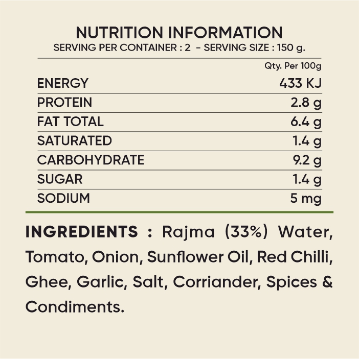 Enjoy the authentic flavor of Pakavo Shahi Rajma. Relish the creamy and flavorful taste of kidney beans cooked in a rich, aromatic gravy, crafted without added preservatives or colors. Ready to heat and enjoy, this wholesome dish is perfect for any meal. Store in a cool, dry place.