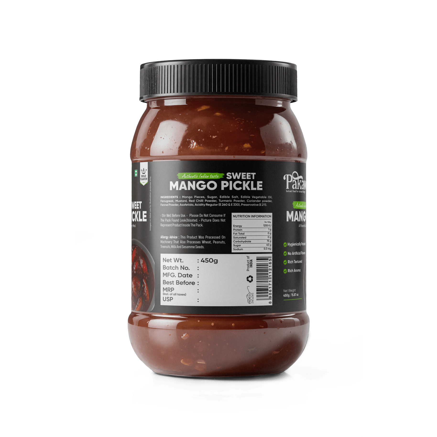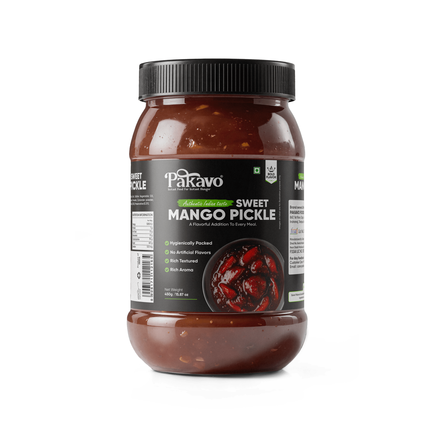 Enjoy the authentic flavor of Pakavo Sweet Mango Pickle (Meetha Aam Ka Achaar). Made with ripe mangoes and a blend of aromatic spices, it delivers a perfectly sweet and tangy taste that pairs beautifully with any meal. Packaged for freshness, store in a cool, dry place and savor it anytime!